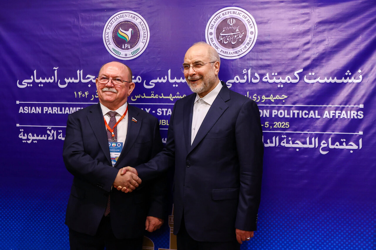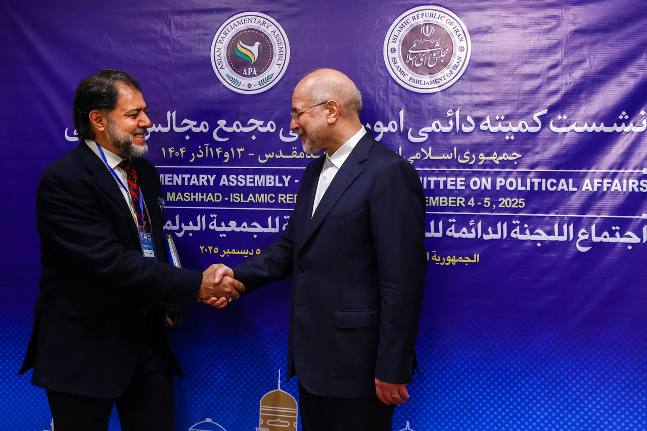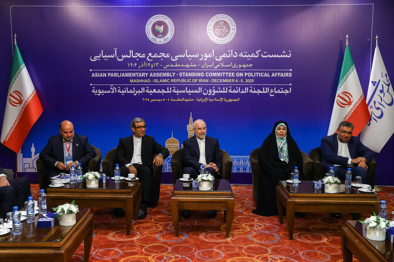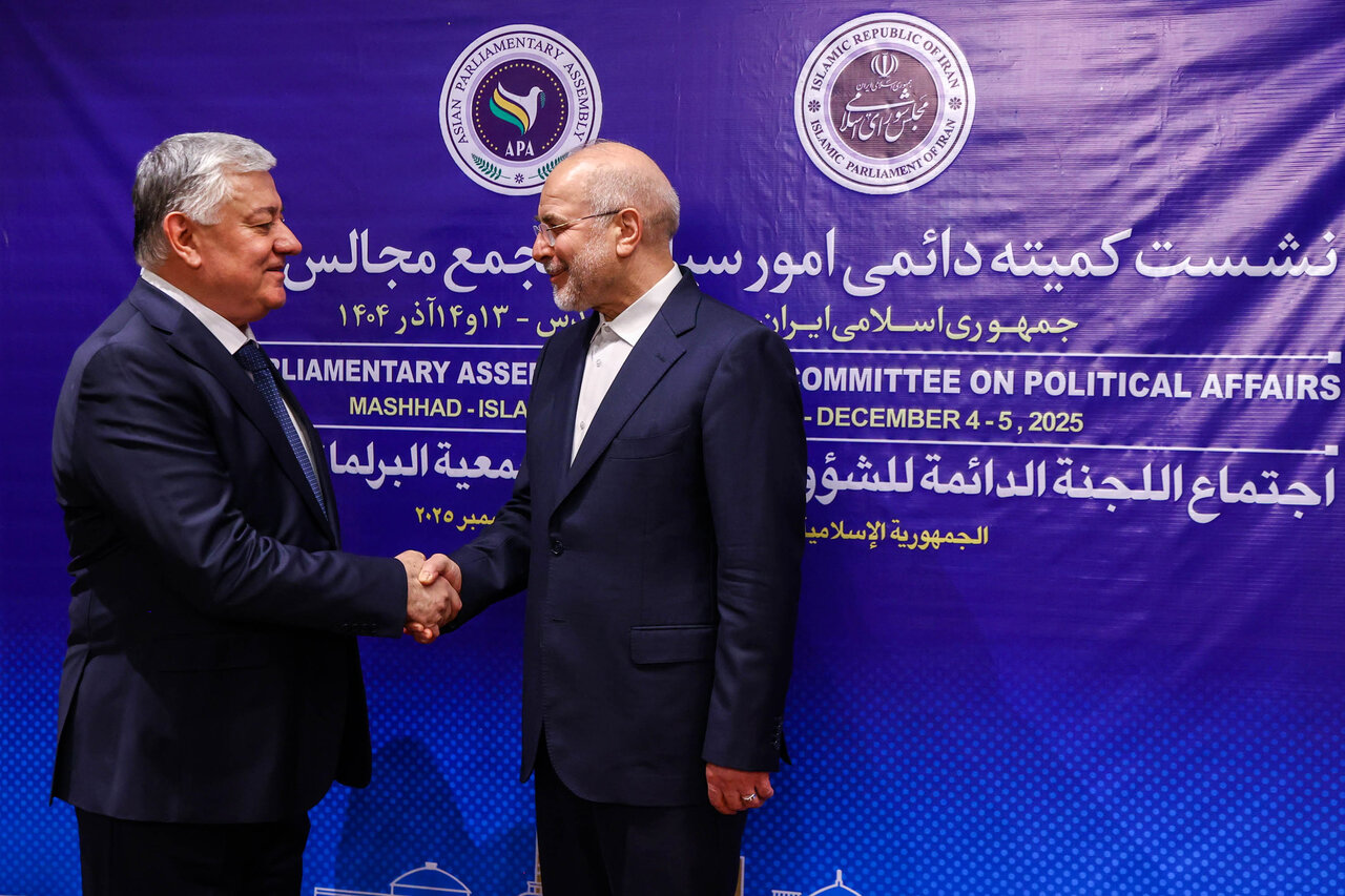 رؤسای هیئتهای پارلمانی شرکتکننده در نشست کمیته دائمی امور سیاسی مجمع مجالس آسیایی (APA) صبح امروز پنجشنبه ۱۳ آذر ماه ۱۴۰۴ با محمدباقر قالیباف رئیس مجلس شورای اسلامی در مشهد مقدس دیدار کردند.