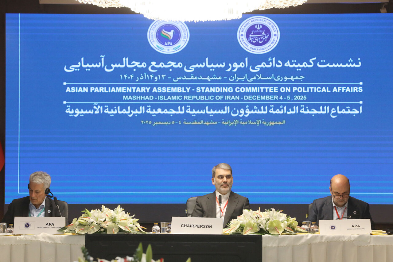 نشست کمیته دائمی امور سیاسی مجمع مجالس آسیایی (APA) امروز (پنج‌شنبه ۱۳ آذر ماه) با حضور ۱۵ هیات پارلمانی از کشورهای مختلف در مشهد مقدس برگزار شد.