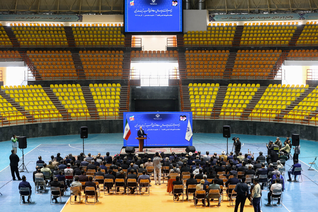 مراسم افتتاحیه سالن ورزشی ۶۵۰۰ نفری شهید آیتالله رئیسی صبح امروز جمعه ۱۴ آذر ماه ۱۴۰۴ با حضور دکتر محمدباقر قالیباف رئیس مجلس شورای اسلامی در شهرستان طرقبه شاندیز استان خراسان رضوی برگزار شد.