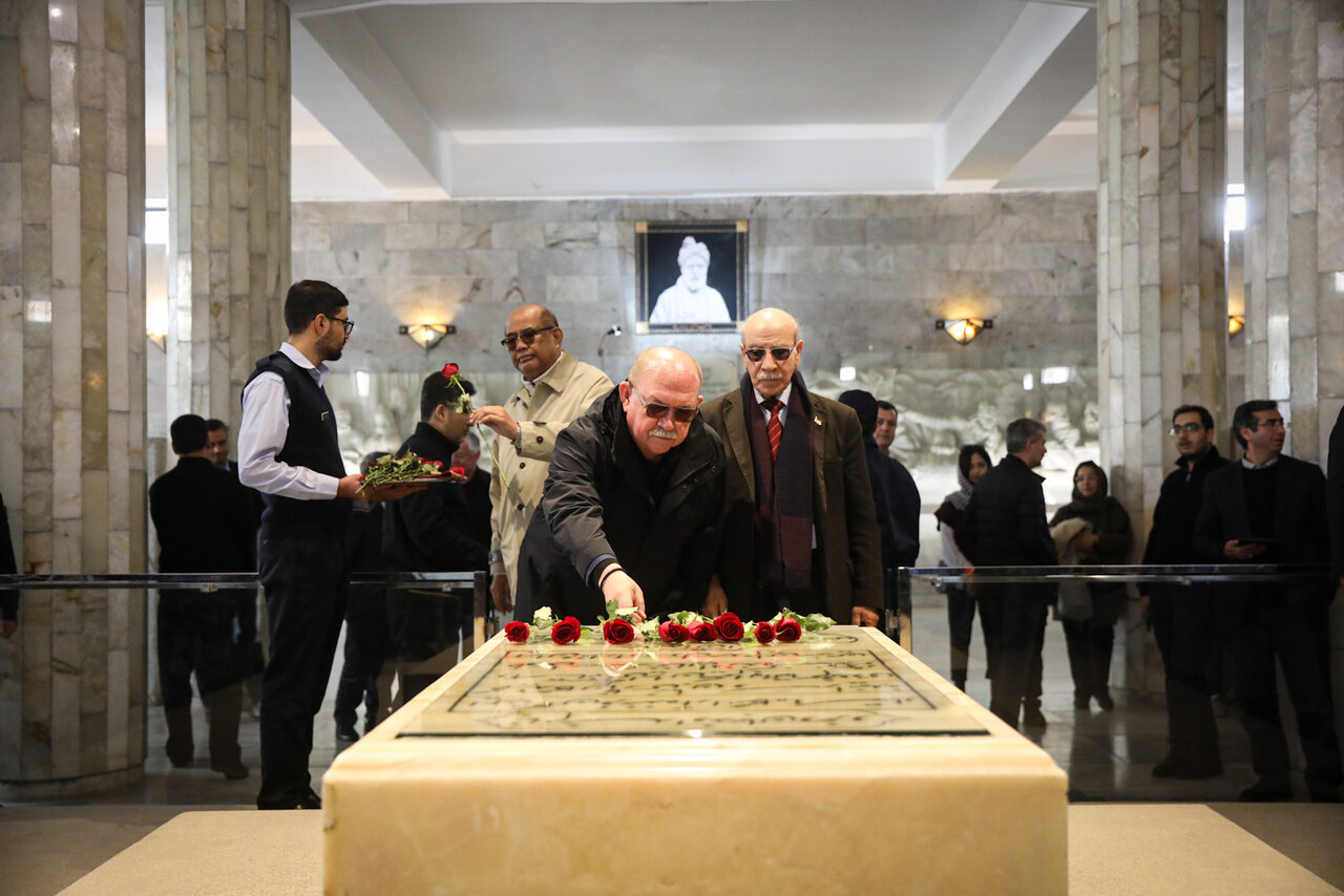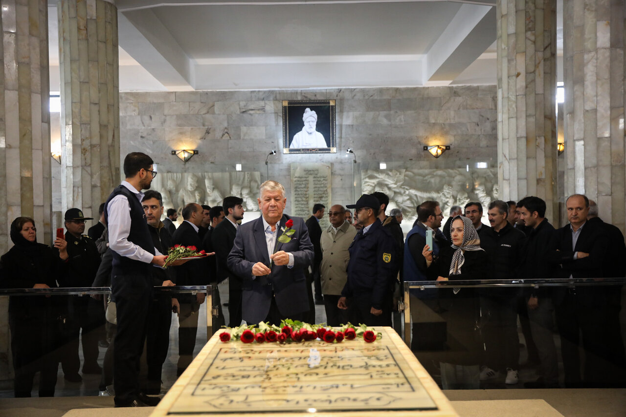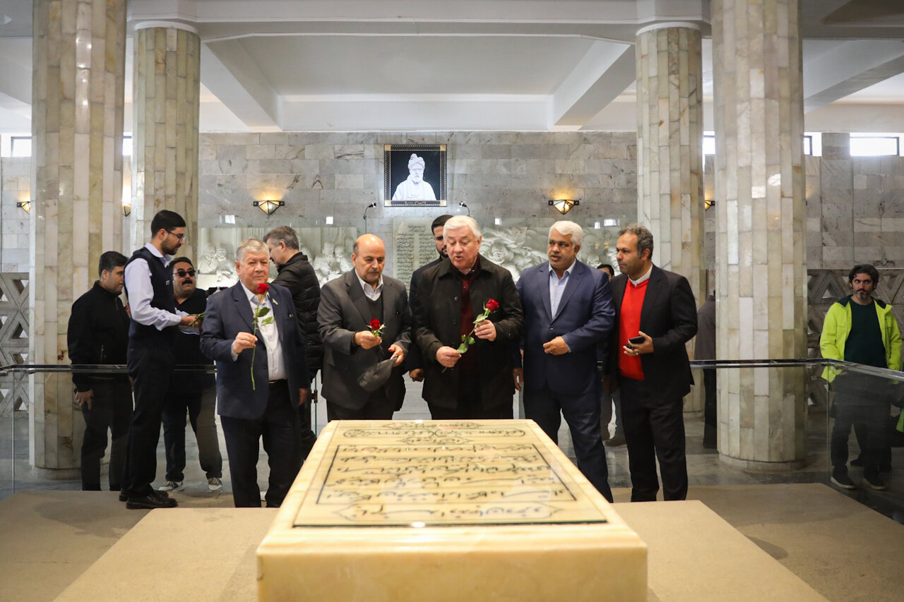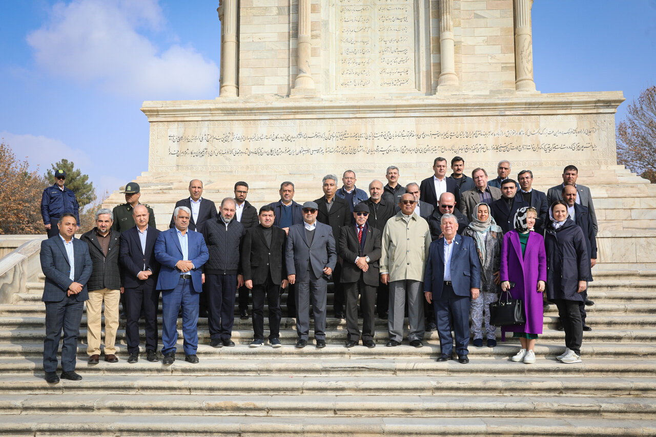 جمعی از مهمانان خارجی شرکتکننده در نشست کمیته دائمی امور سیاسی مجمع مجالس آسیایی (APA) که در شهر مشهد برگزار شد، ظهر امروز جمعه ۱۴ آذر ماه ۱۴۰۴ از آرامگاه فردوسی بازدید و شاخه گلی به مقام این شاعر شهیر نثار کردند.