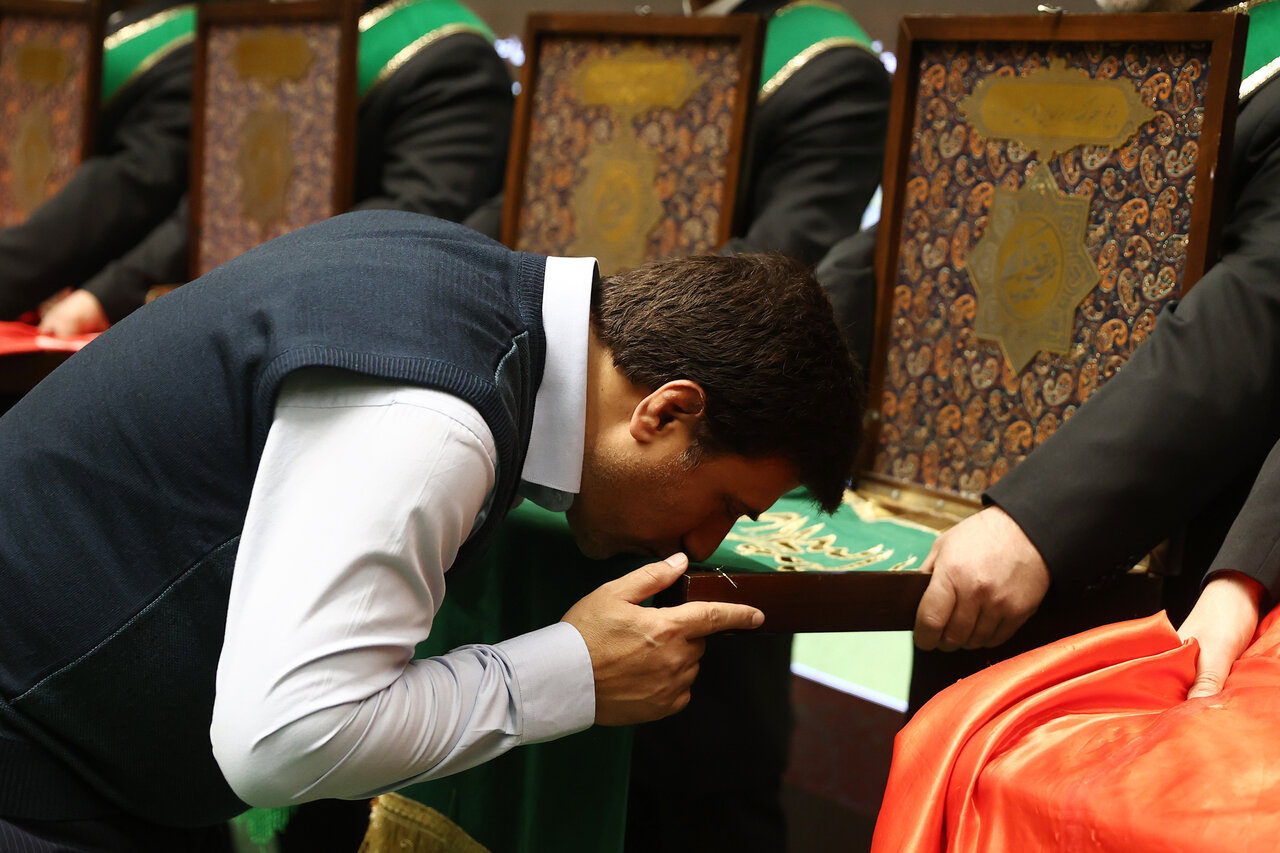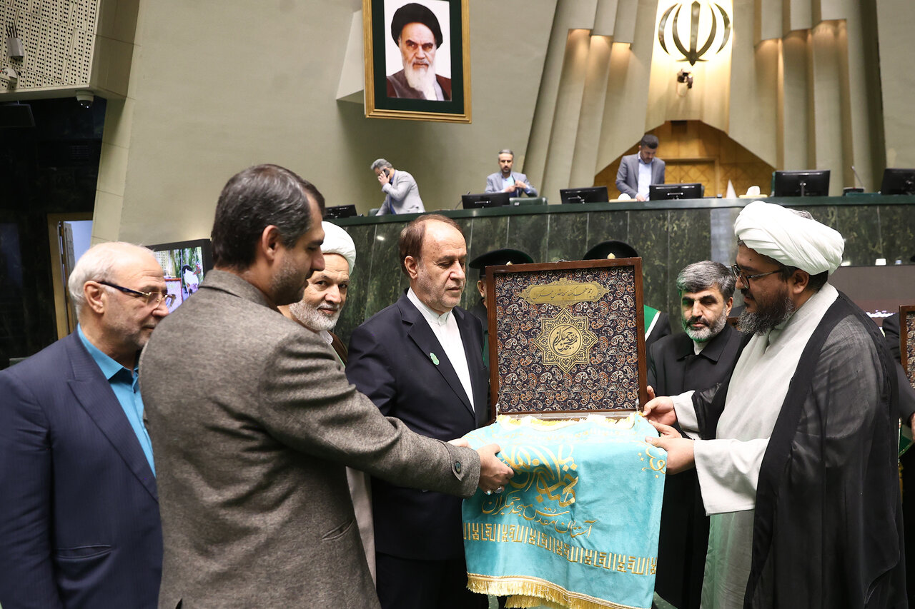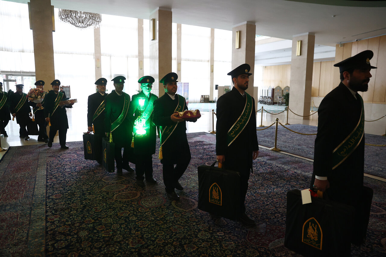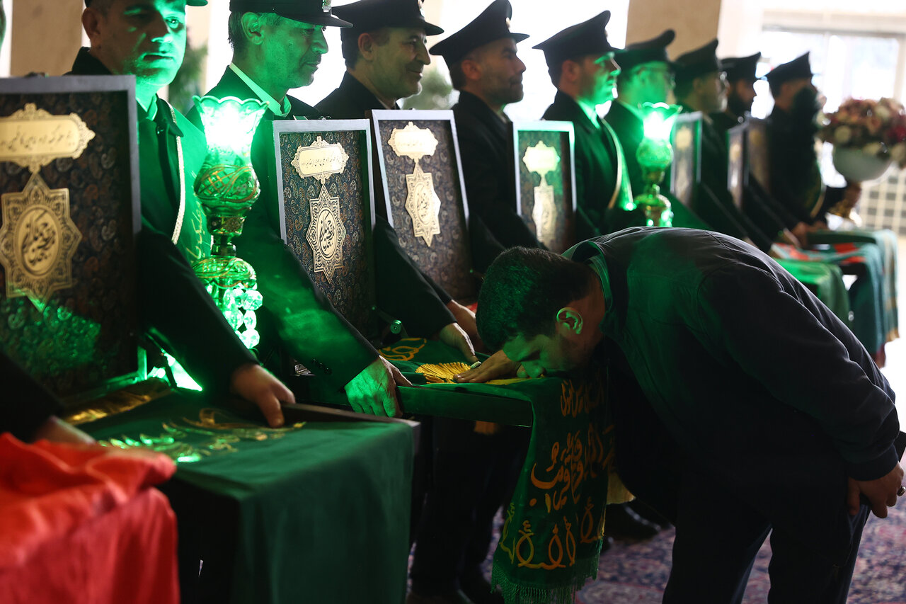 خادمان مسجد جمکران صبح امروز سه شنبه ۱۴ بهمن به مناسبت فرا رسیدن نیمه شعبان میلاد صاحب الزمان (عج) با در دست داشتن پرچم های حرم مطهر امام رضا (ع) و مسجد جمکران در صحن علنی حضور یافتند.