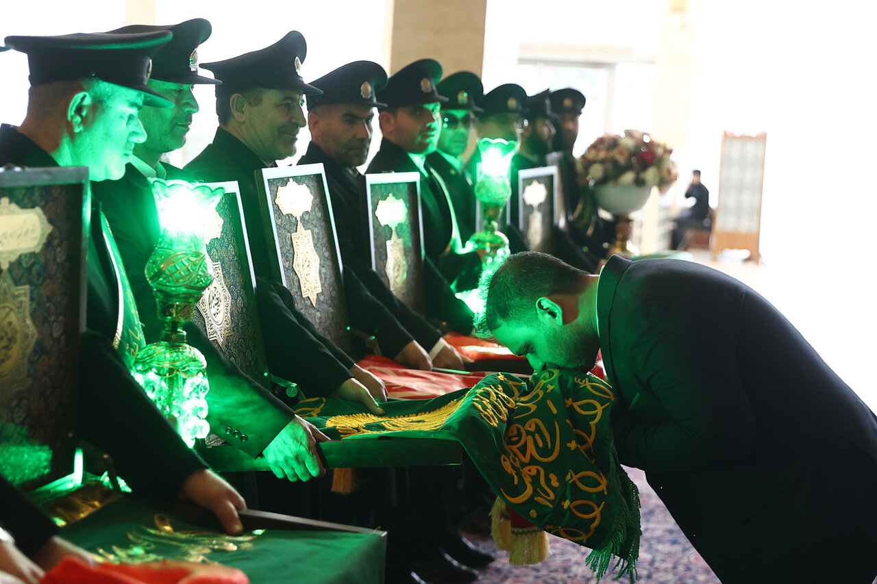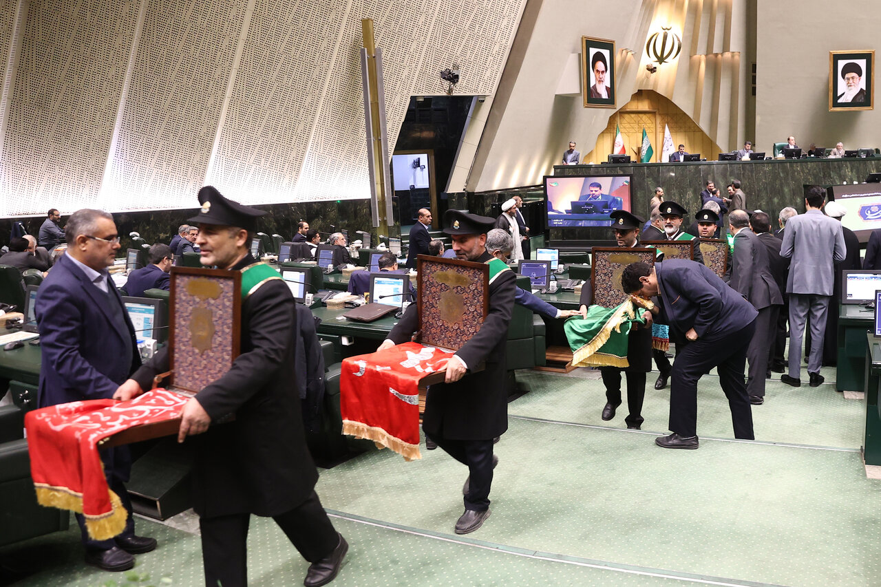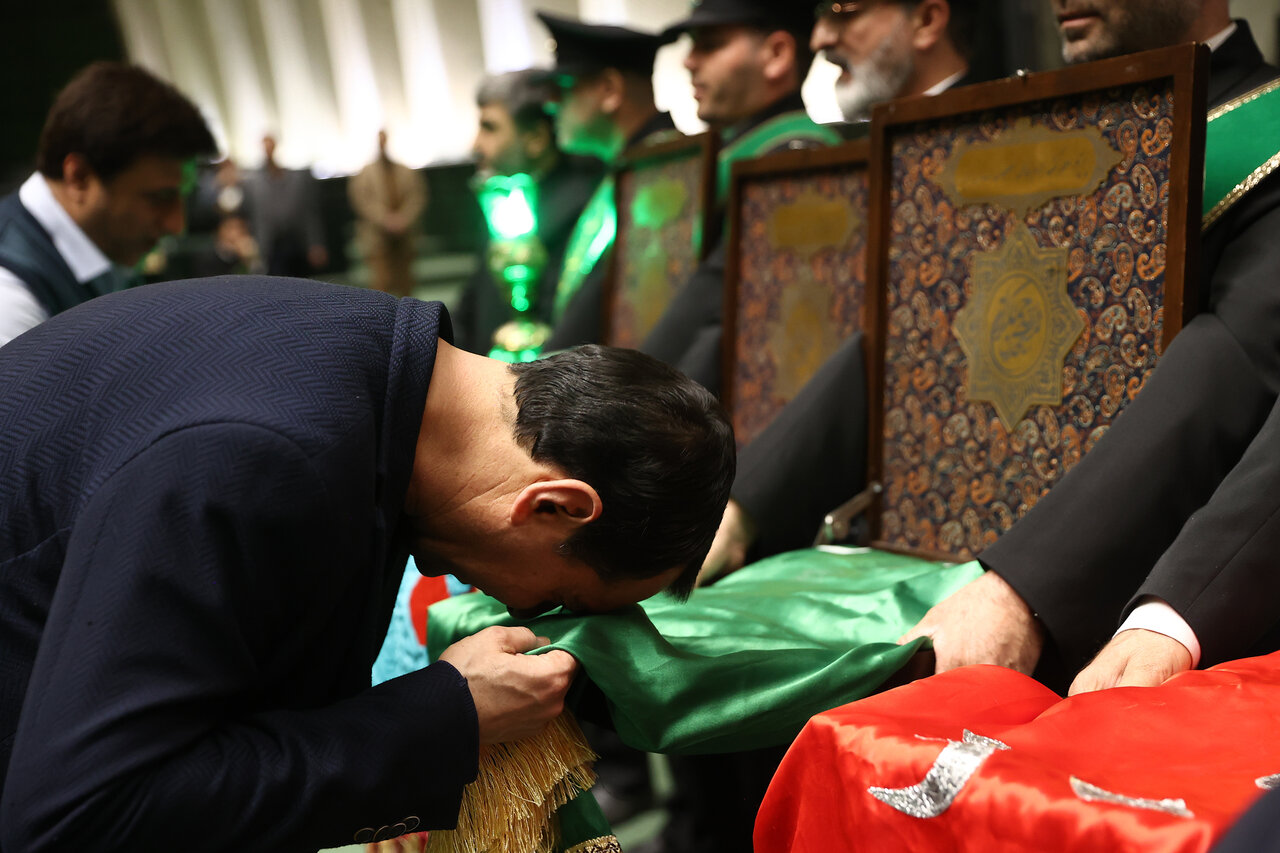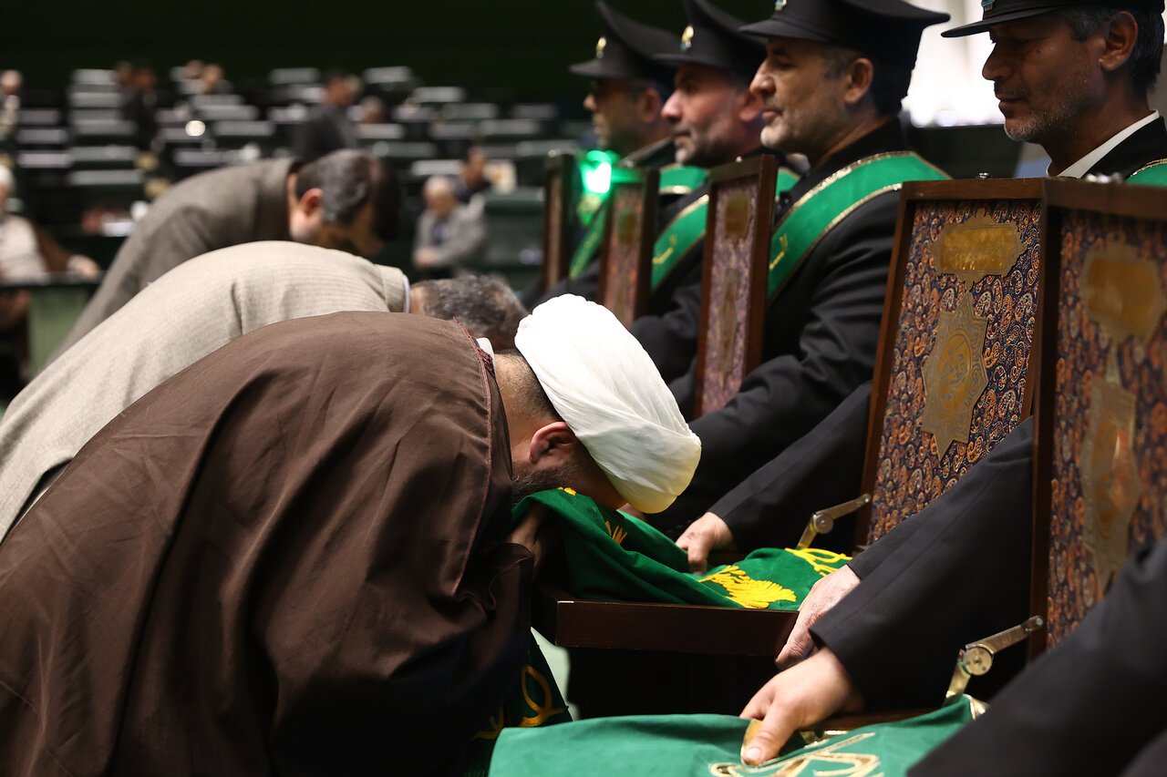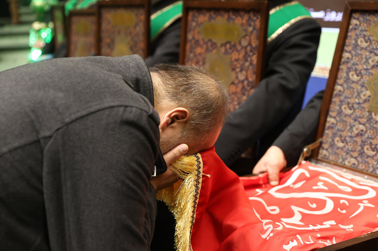 خادمان مسجد جمکران صبح امروز سه شنبه ۱۴ بهمن به مناسبت فرا رسیدن نیمه شعبان میلاد صاحب الزمان (عج) با در دست داشتن پرچم های حرم مطهر امام رضا (ع) و مسجد جمکران در صحن علنی حضور یافتند.